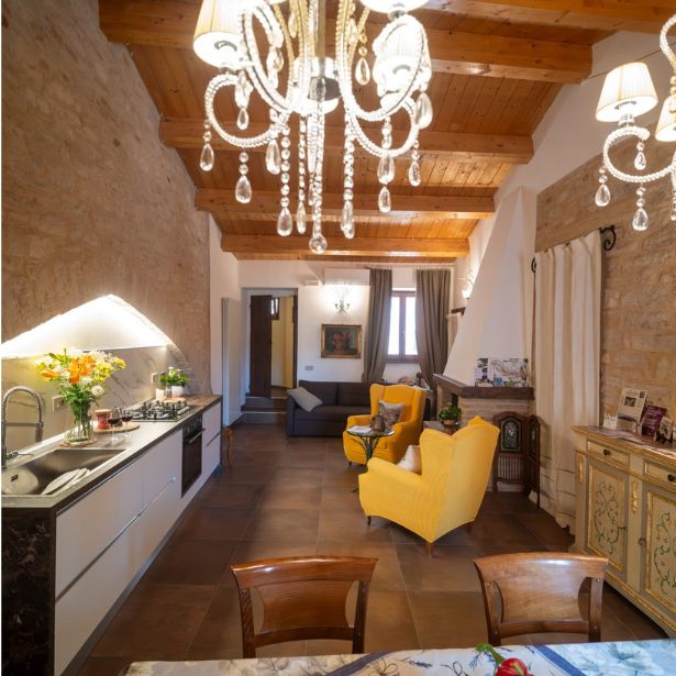 La nostra accogliente casa vacanze dispone di due camere, ognuna con letto matrimoniale e bagno privato, ideali per garantire comfort e privacy. Il soggiorno, caldo e rilassante, offre un caminetto perfetto per serate in compagnia sorseggiando un buon vino, oltre a un comodo divano letto per ospiti aggiuntivi. La cucina è completamente attrezzata con frigorifero, lavastoviglie, macchina del caffè e tutti i comfort. A disposizione degli ospiti anche il WiFi gratuito e l'aria condizionata, per un soggiorno sempre connesso e al giusto clima. Un ambiente curato e funzionale per una vacanza indimenticabile in ogni stagione.